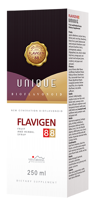 The composition of FLAVIGEN 88 PROTECTOR was defined by the actual scientific results of bioflavonoids and other chemopreventive phytochemicals immunomodulatory activity. The active ingredients support mechanisms that optimize the activity of the immun system and help to prevent diseases.